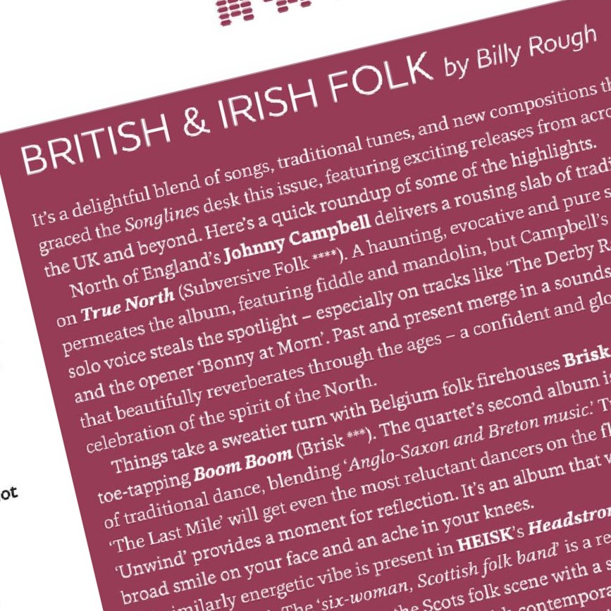 Find my latest British and Irish Folk round-up only in Songlines magazine: https://www.songlines.co.uk/